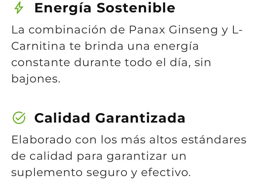 L-Carnitina: Clave en la movilización de ácidos grasos para la producción de energía, ayudando a reducir fatiga y mejorar el rendimiento físico.
