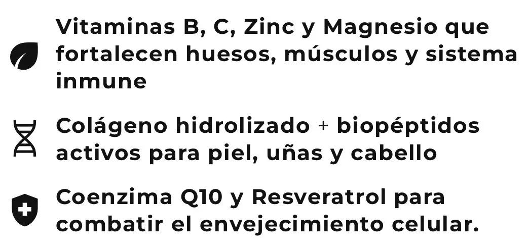 Formulado con ingredientes de alta calidad, este colágeno hidrolizado se absorbe rápidamente, ayudando a restaurar la elasticidad y la hidratación de la piel, reduciendo visiblemente las arrugas y líneas de expresión.
