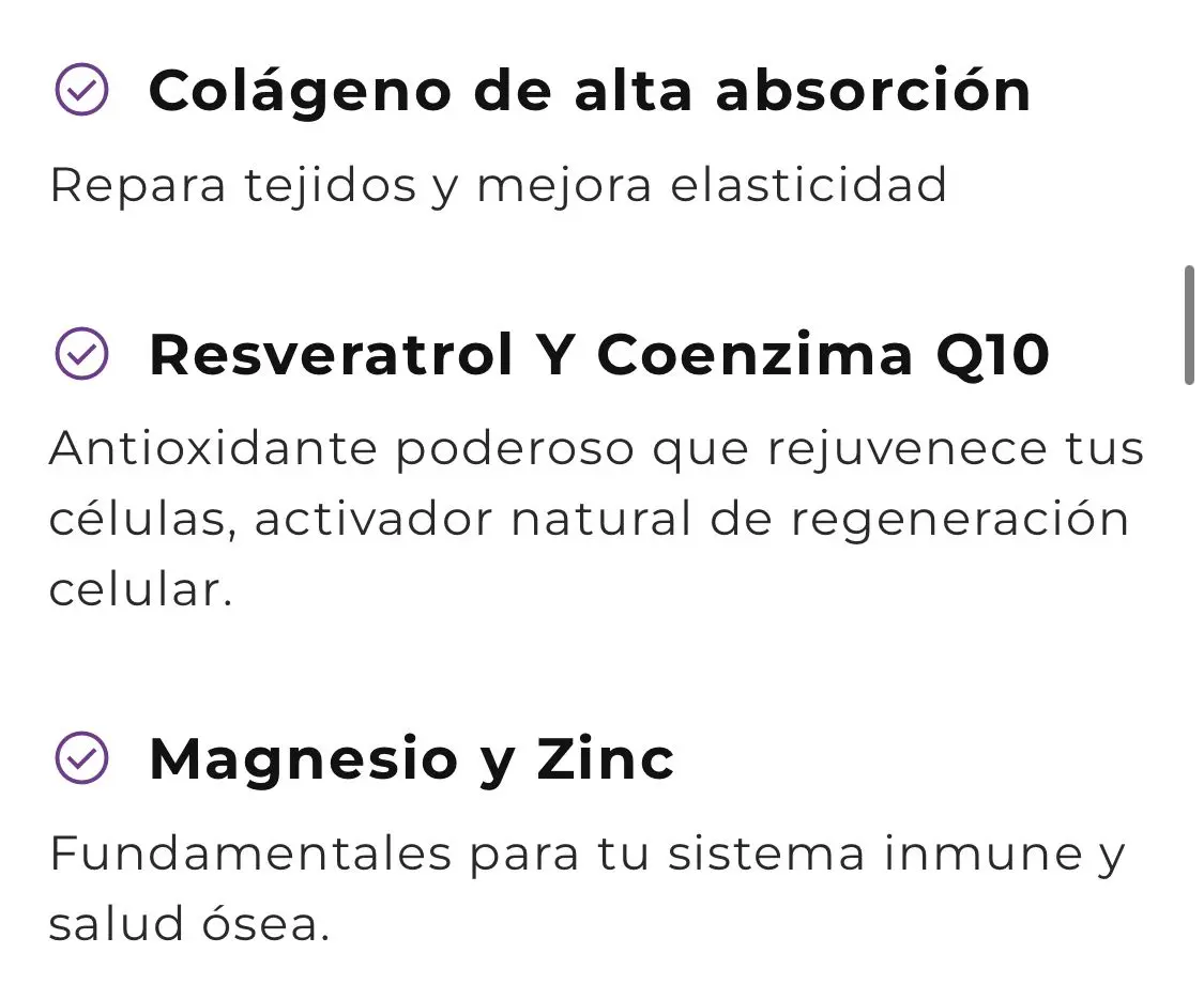 RENÓVA+ contiene colágeno hidrolizado que ayuda a rejuvenecer tu piel y a reducir arrugas